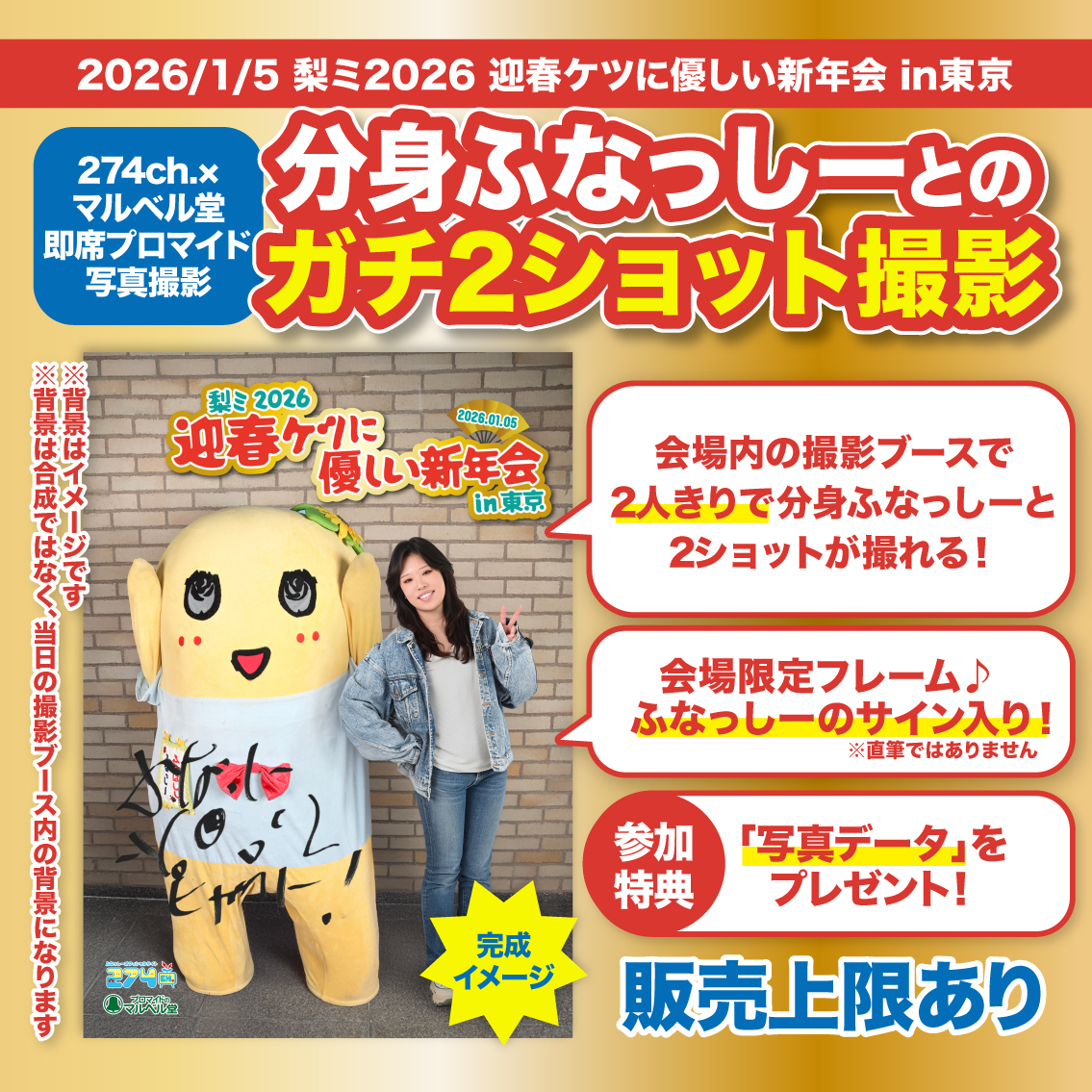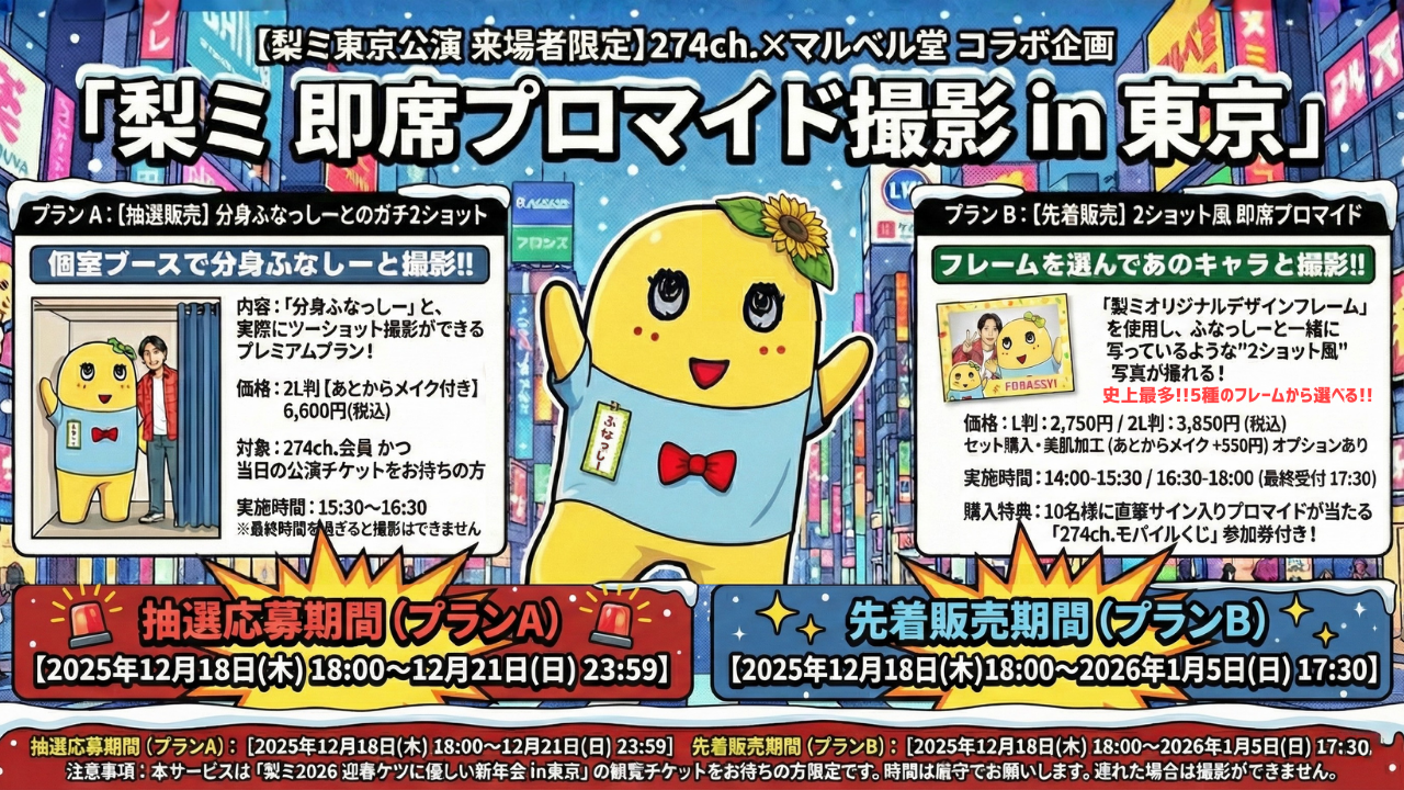 【梨ミ東京公演 来場者限定】274ch.プレゼンツ「梨ミ2026 迎春ケツに優しい新年会 in東京」の「梨ミ 即席プロマイド撮影」詳細決定!