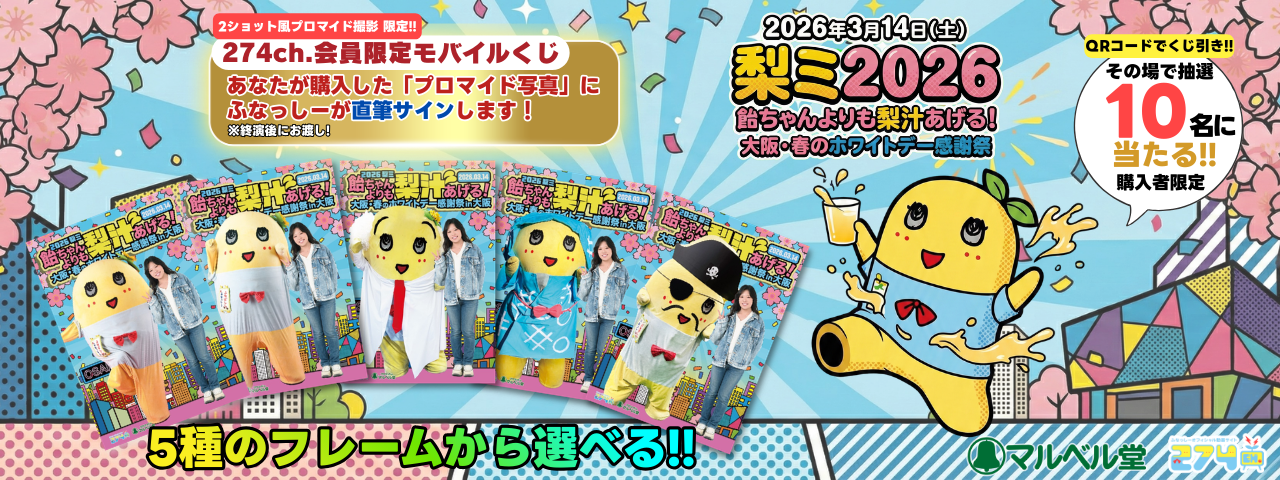 【梨ミ大阪公演 来場者限定】274ch.プレゼンツ「梨ミ2026 飴ちゃんよりも梨汁あげる!大阪・春のホワイトデー感謝祭 in大阪」の「梨ミ 即席プロマイド撮影」詳細決定!