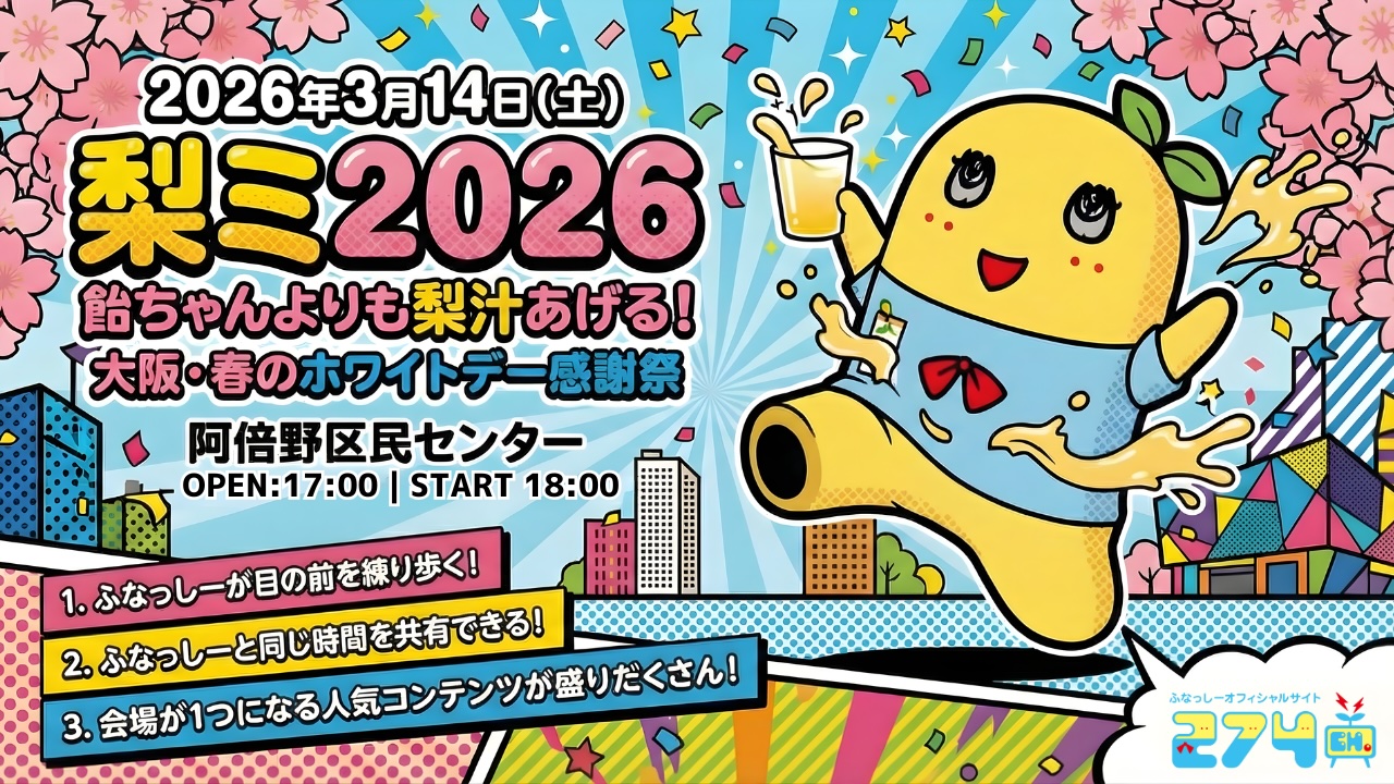 274ch.プレゼンツ「梨ミ2026 飴ちゃんよりも梨汁あげる!大阪・春のホワイトデー感謝祭 in大阪」のチケット直前先着販売が決定しました!