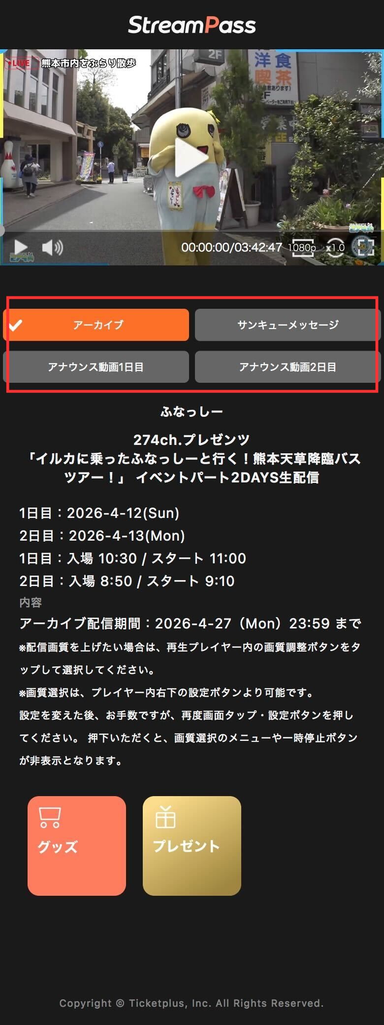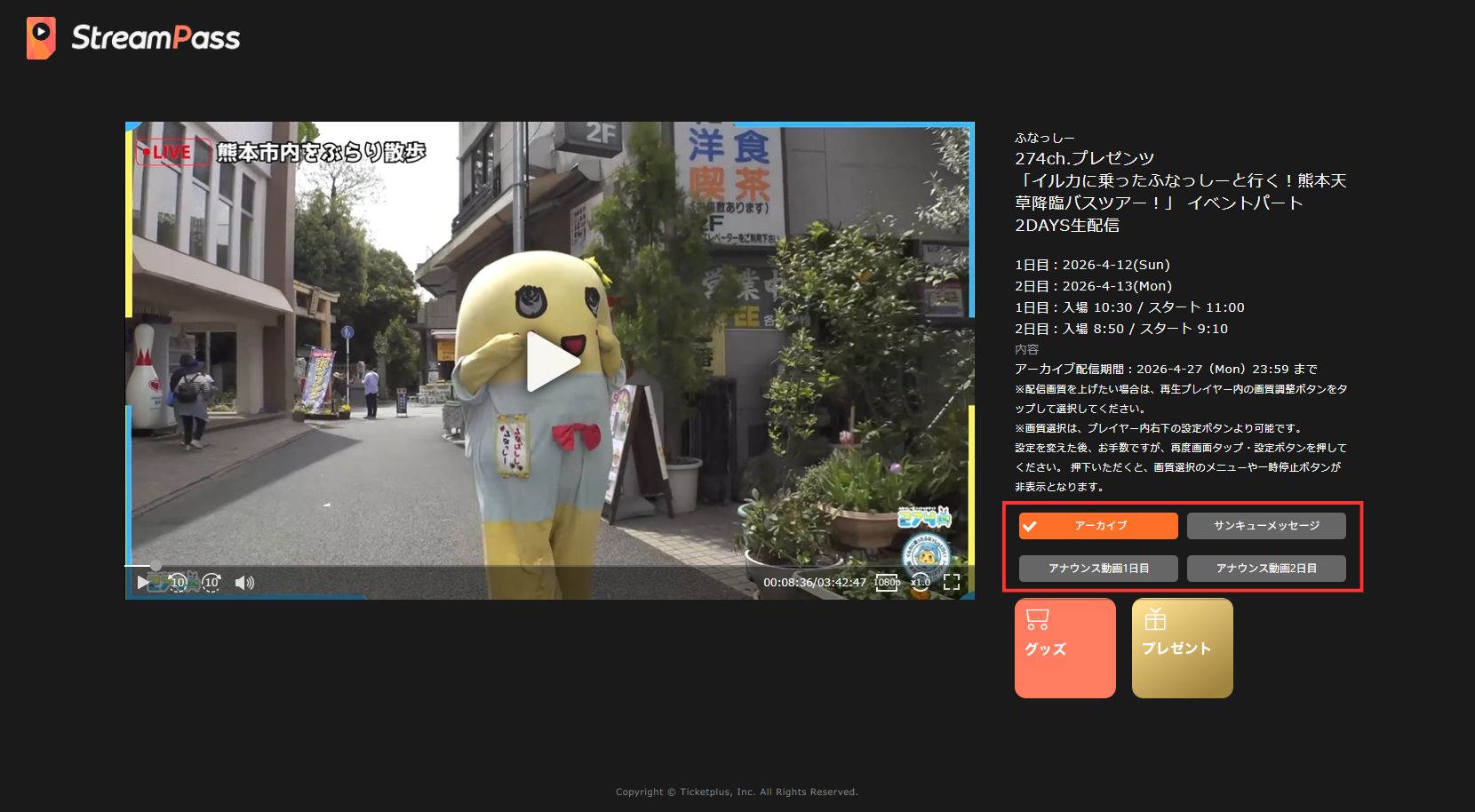※4/23更新【ご案内】「イルカに乗ったふなっしーと行く!熊本天草降臨バスツアー!」2DAYS生配信チケット購入者限定特典の閲覧方法と視聴期限延長について