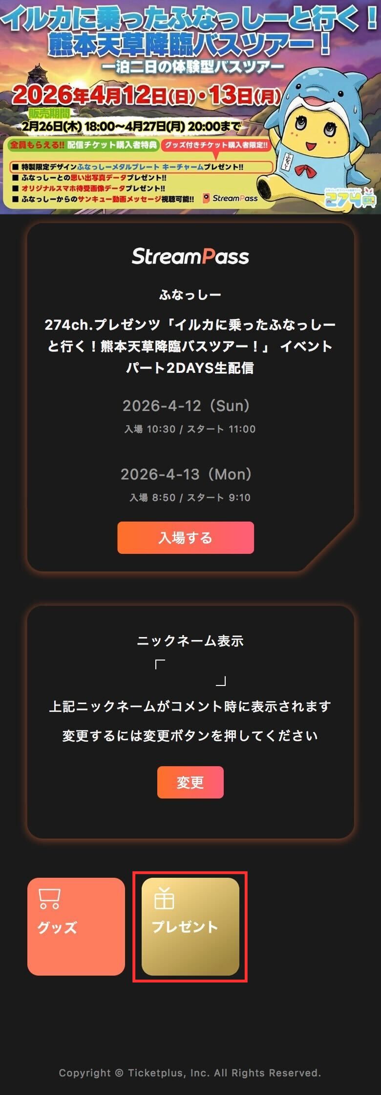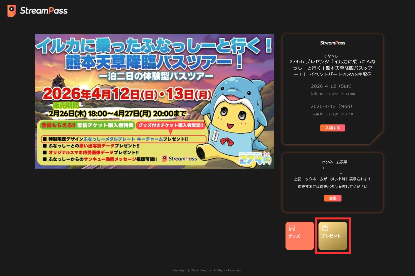 274ch.プレゼンツ「イルカに乗ったふなっしーと行く!熊本天草降臨バスツアー!」2DAYS生配信チケットをご購入いただいた皆様へ